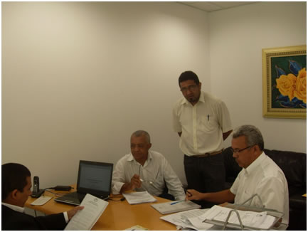 A Comisão de Justiça, Economia e Finanças da Câmara Municipal de Poconé, composta pelos vereadores João Bosco (PMDB), Gonçalo Beijo (DEM) e Gonçalo Curado (PR) foram até o Tribunal de Contas do Estado, acompanhado do Secretário Administrativo da Casa Benedito Norberto, para buscarem orientação técnica com relação a vários projetos do executivo encaminhados à Câmara, dentre eles o Plano de Cargos, Carreira e Salários dos servidores efetivos da Prefeitura. O objetivo da comissão, foi sanar dúvidas relacionadas a alguns artigos do projeto que está tramitando na respectiva comissão. Segundo o presidente da CJEF, vereador João Bosco, ao analisar o projeto, surgiram dúvidas dos vereadores, quanto a legalidade de alguns artigos e o Tribunal de Contas, enfatiza, é o órgão certo para orientar os parlamentares e evitar a ocorrência de erros na aprovação de artigos inconstitucionais.